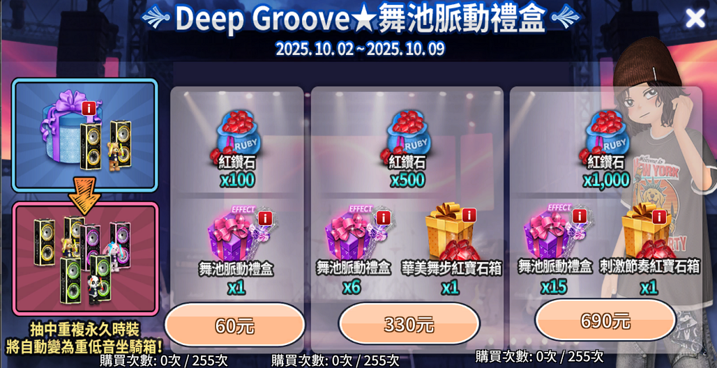 ※於舞池脈動禮盒抽中重複永久時裝將自動變為重低音坐騎箱。