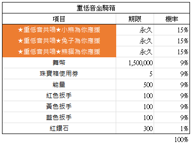 ※於重低音坐騎箱抽中重複坐騎將自動變為魔法卡票券*3。
