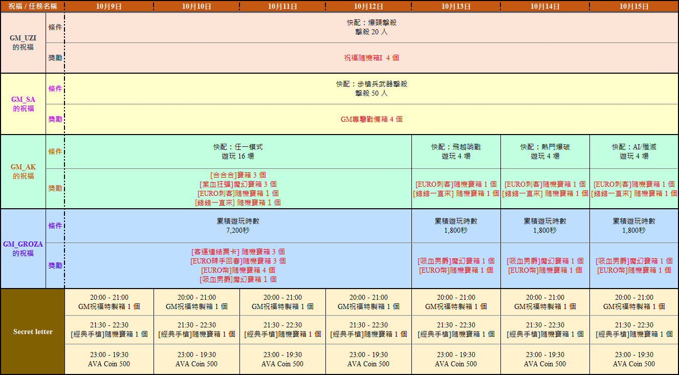 ※除了《Secret letter》外,活動統一時間皆為下午12:00開始,至當日晚上23:59結束。