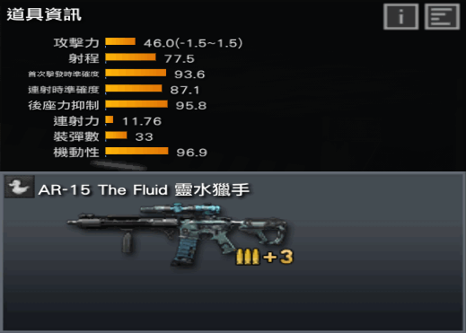 ●AR-15 The Fluid 靈水獵手 目前不能在黑市交易。