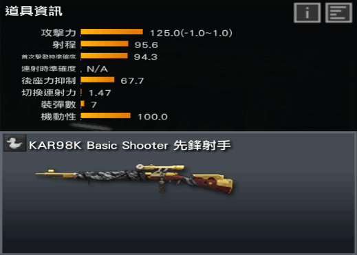 ※ KAR98K Basic Shooter 先鋒射手 無法進行改造與槍鏘自由配