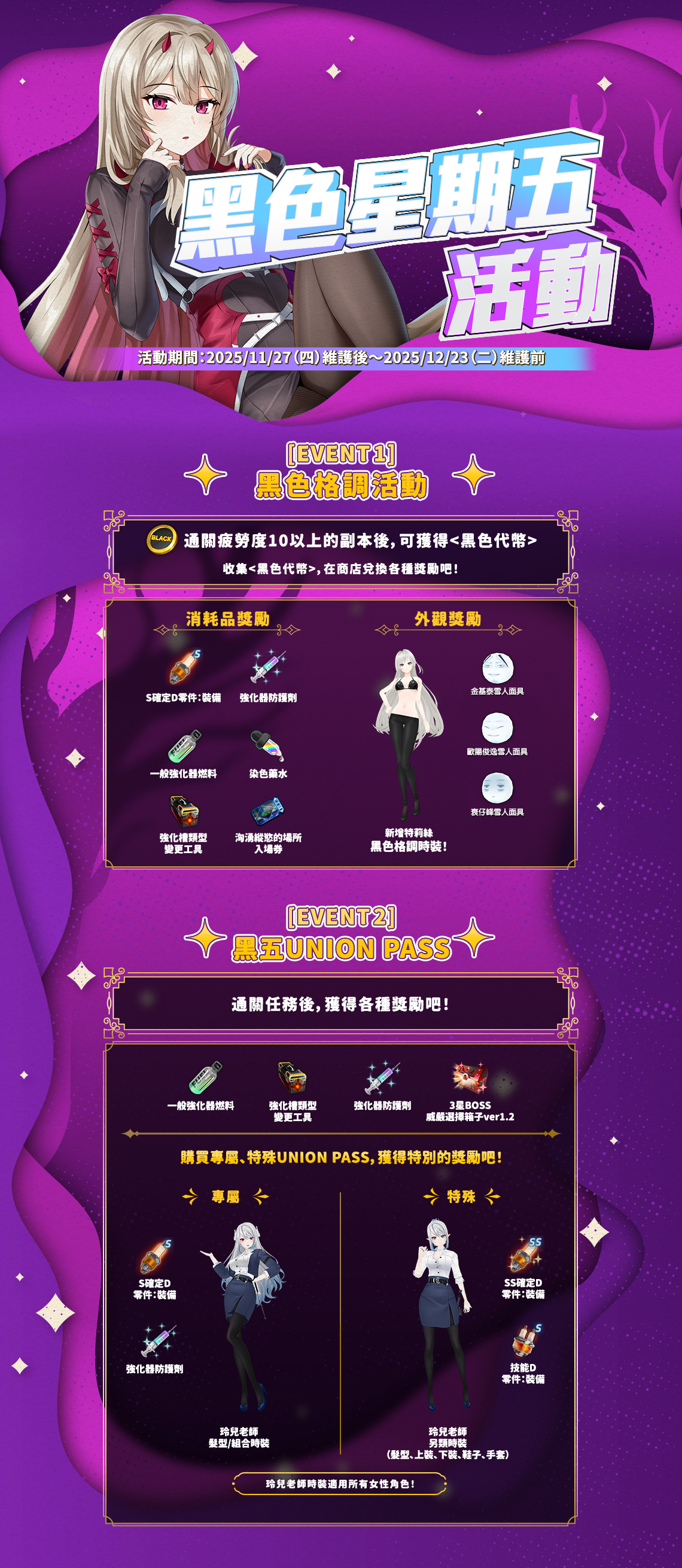 | 黑色格調下裝 [活動] | 1 | 20 | 每角色1次 |