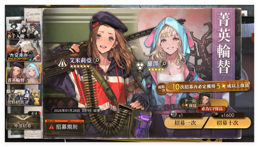 ②在本招募中,前10次招募中必定獲得至少1名5星以上探員。