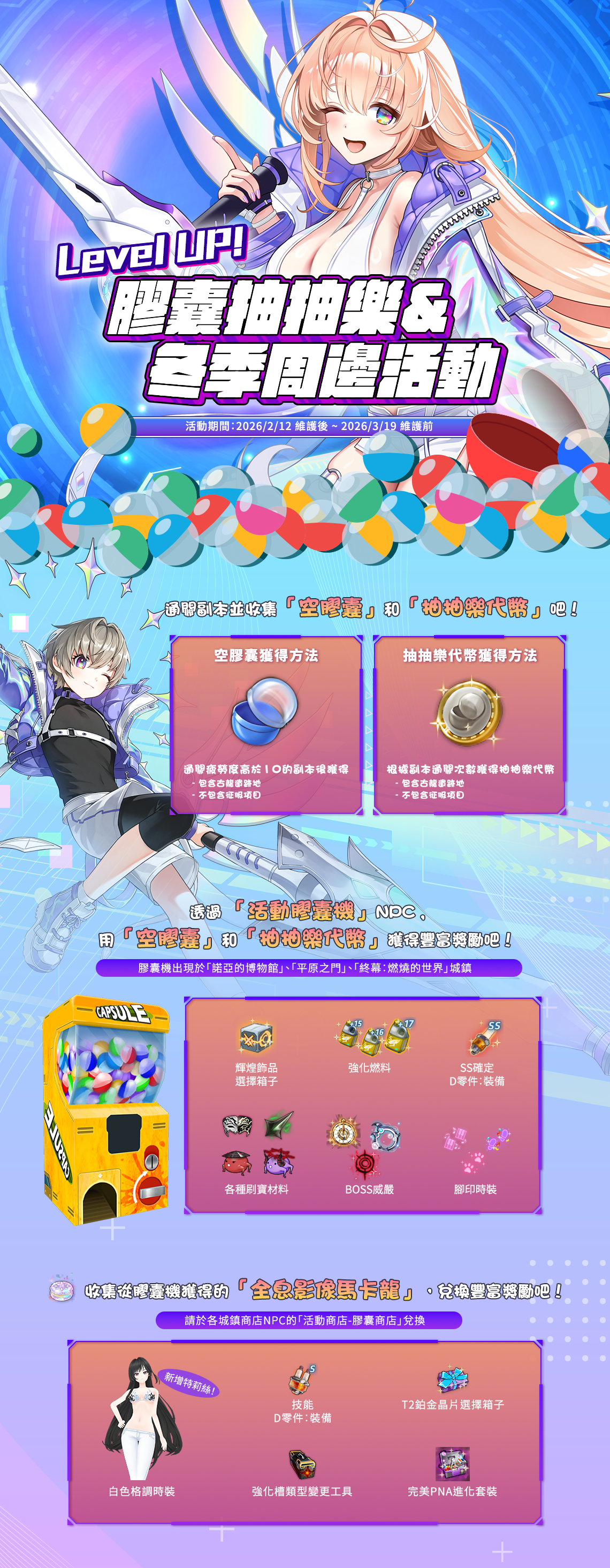 ※活動結束後,膠囊抽抽樂膠囊機、活動製作一覽將會關閉,無法進行抽取及兌換,請多加留意。