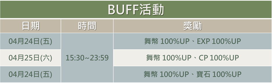 【魔法卡片機率20%提升】、【週末登入活動】、【週末BUFF活動】、