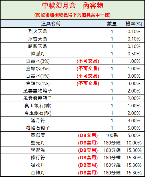 ※顯示有【DB套用】的道具,在獲得後會直接套用至介面左下角【道具使用現況】
