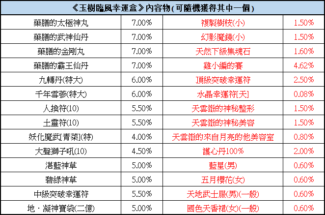 4.幸運盒道具為機會中獎商品,消費者購買或參與活動不代表 即可獲得特定商品。