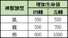 5.對角色有生命值提升效果的神獸,隨著轉職提升效果也會增加