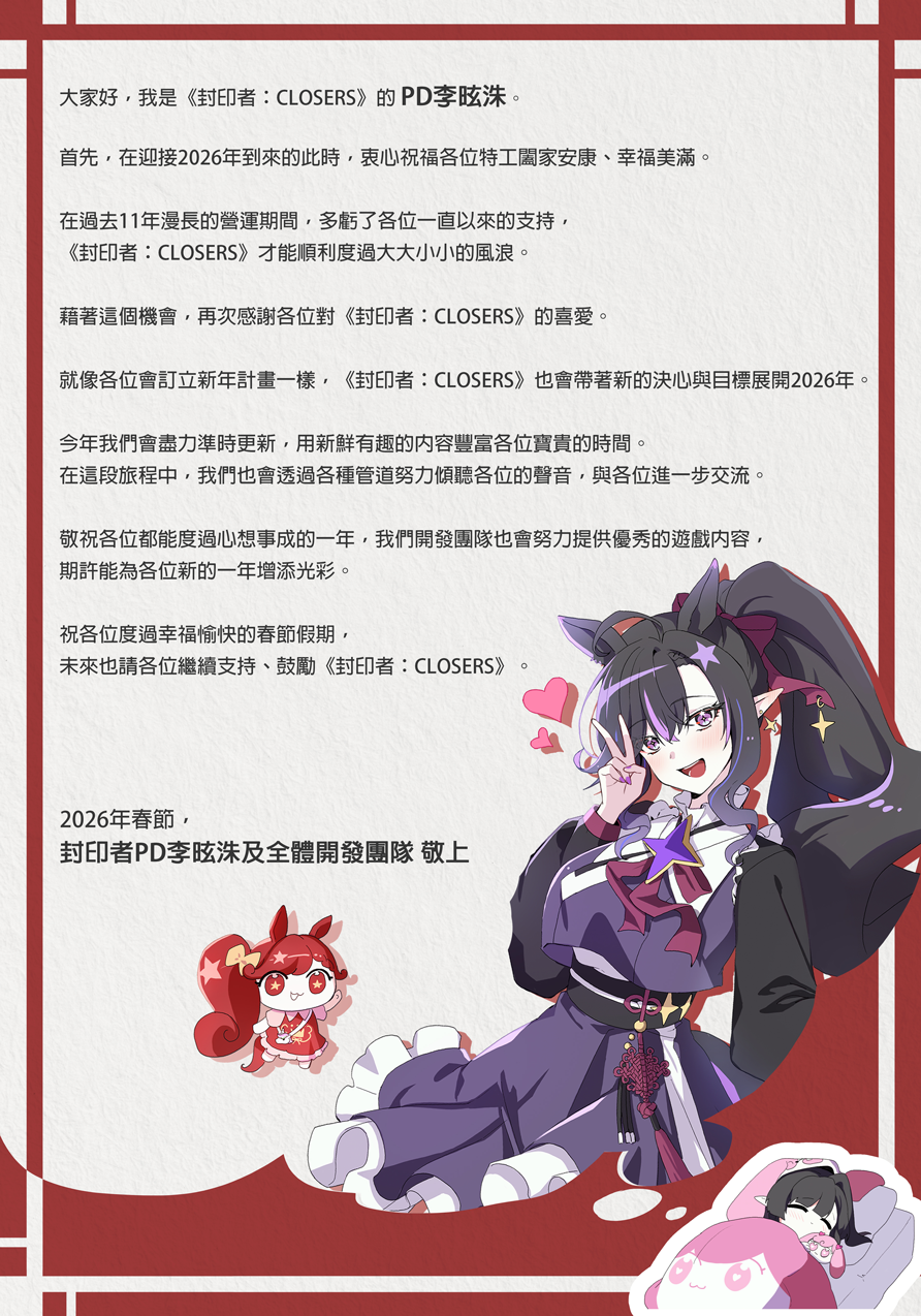 《封印者:CLOSERS》李PD的2026年2月新年問候