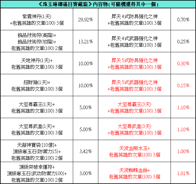 ►珠玉琳瑯滿目寶藏箱內容物更新: