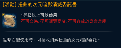 活動期間內,上線登入累積5分鐘,即可獲得郵件提供【[活動] 扭曲的次元暗影消滅委託書」】