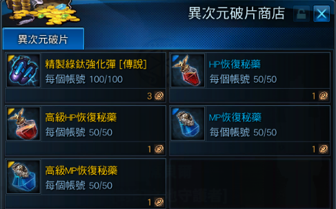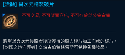 活動npc【[封印之地守護者]吉伯特格雷斯】異次元破片商店販售道具