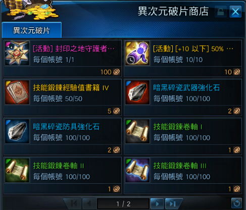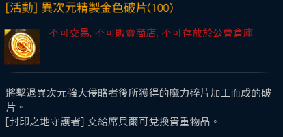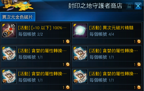 活動npc【[封印之地守護者]席貝爾】異次元金色破片商店販售道具