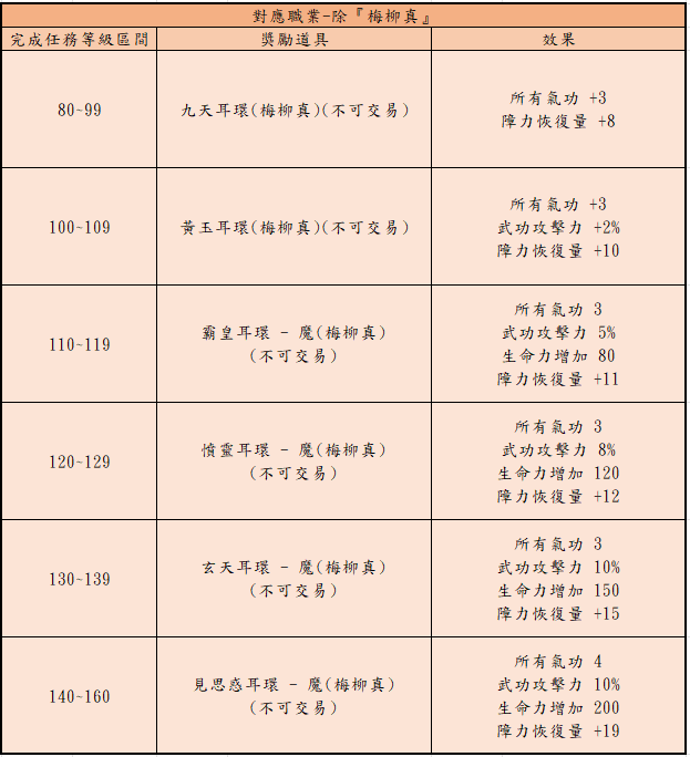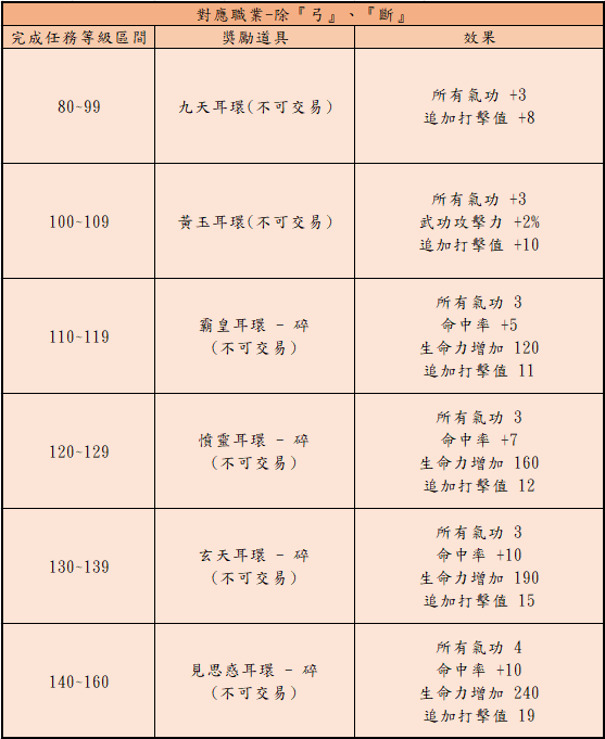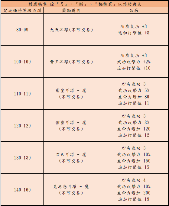 2.獲得任務道具『兌換耳環戰票』後,不一定要馬上與泫渤派NPC『金香玉』交付任務,大俠們可以等到角色等級提升到可以領取想要的耳環時,在交付任務喔,系統會依照交付任務的職業、等級,發放對應的耳環作為獎勵,詳細對應資料請參考活動獎勵。