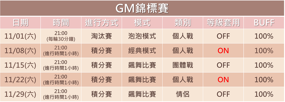 本月開始會陸續舉辦開放舞階的GM錦標賽,