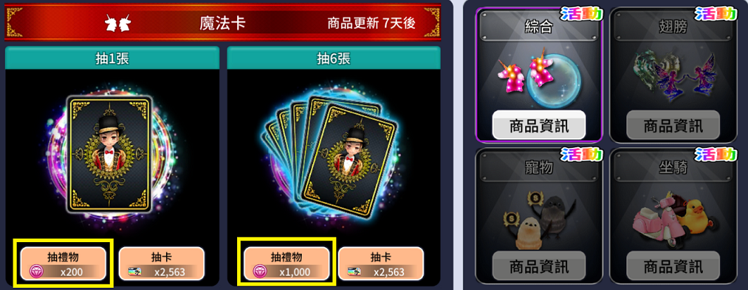 活動期間內,使用紅鑽石抽取魔法卡享20%折扣。(1抽原價250→200;6抽原價1250→1000)