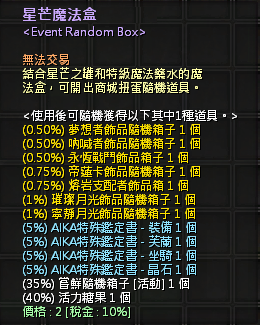 使用『被封印的魔法箱子』及『解放的魔法鑰匙』與NPC『魔女』露卡兌換,兌換後可獲得『被解放的美味魔法箱子』(無法交易)及『露卡的感謝代幣』(無法交易)。
