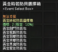 『露卡的感謝代幣』可兌換『黃金時裝防具選擇箱』、『黃金時裝武器選擇箱』、『傳統韓服[30天]-完全期』、『星芒魔法盒』等道具。