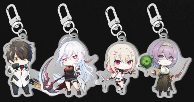 ※「炫光精靈」背景壓克力立牌整體結構:一位角色在前,一個背景威嚴在後,一個底座 的壓克力立牌組合。