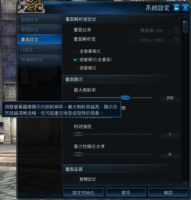 ┗更新後,玩家可至【系統設定】>【畫面設定】,調整最適合配備狀況的刷新率。