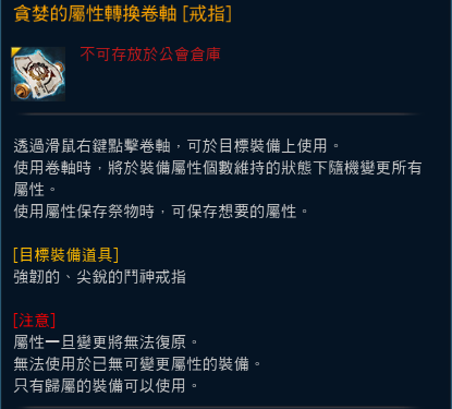 貪婪的屬性轉換卷軸 [戒指] |