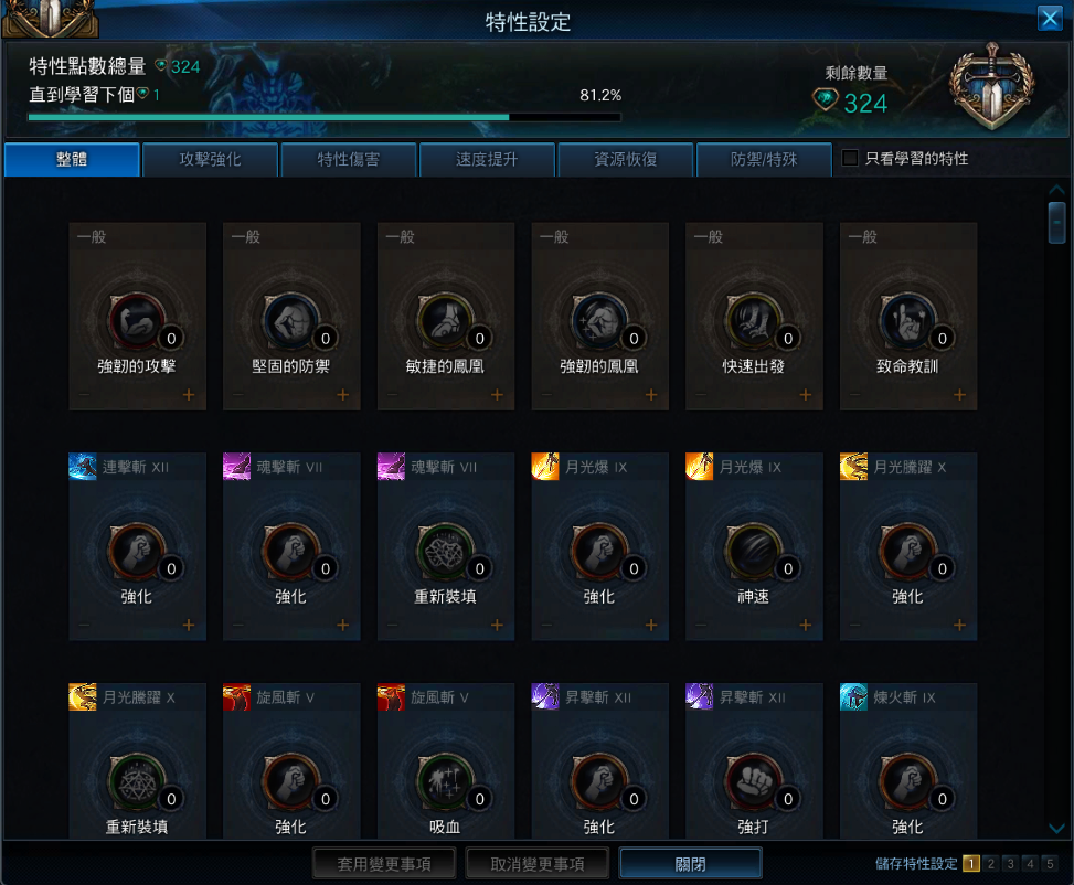 ┗特性設定頁面右下方,追加【儲存特性設定】擴充UI頁,每頁面擴充時,需消耗5萬金幣。