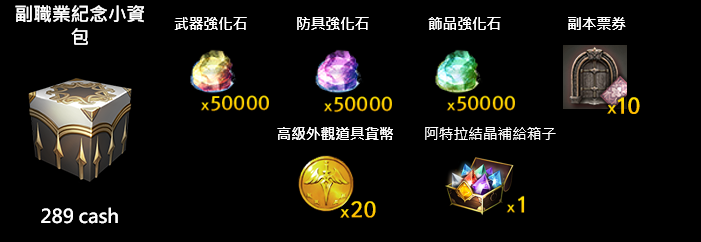 感謝各位星靈使的耐心等候,歡慶副職業開放,推出了對於副職業有幫助的特別禮包!