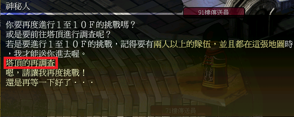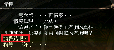 | 打完99層後,與凜特進行對話,前往塔頂 | |