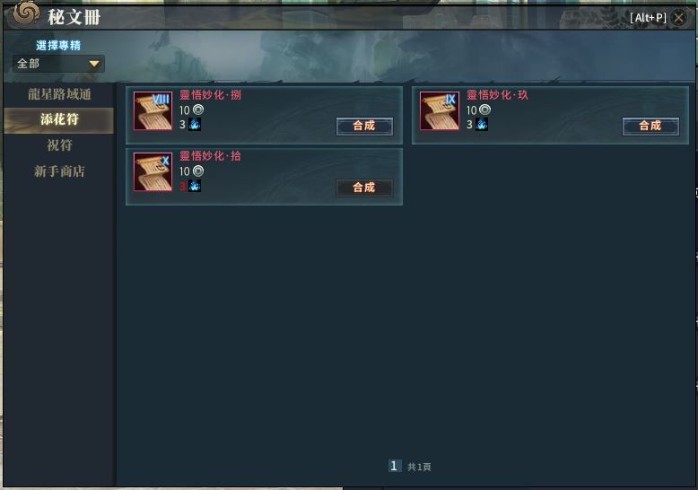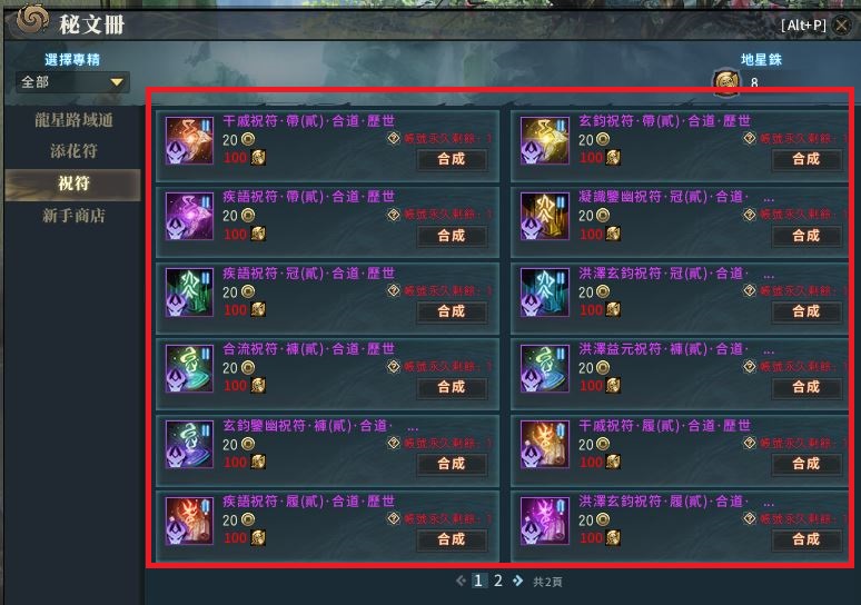 ※日露玨/月露玨累積屬性等級分開計算,例:可同時裝備日露玨.掣電18及月露玨.掣電18 【符咒】只要用「秘文冊」就可以輕鬆取得的能力值,務必加好加滿! 透過【秘文冊】→【祝符】項目,可購買基礎二級符咒,解鎖符咒屬性後,可加持該符咒屬性