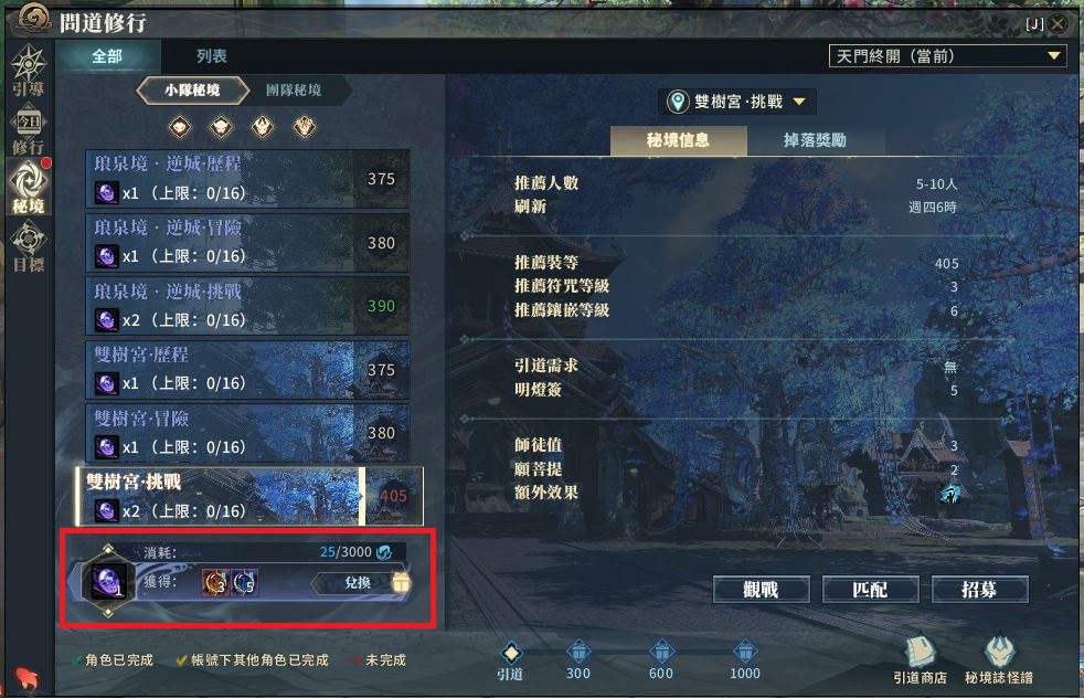 ※挑戰皆為高難度副本,還請仙友們多多利用「招募」功能來組隊喔!