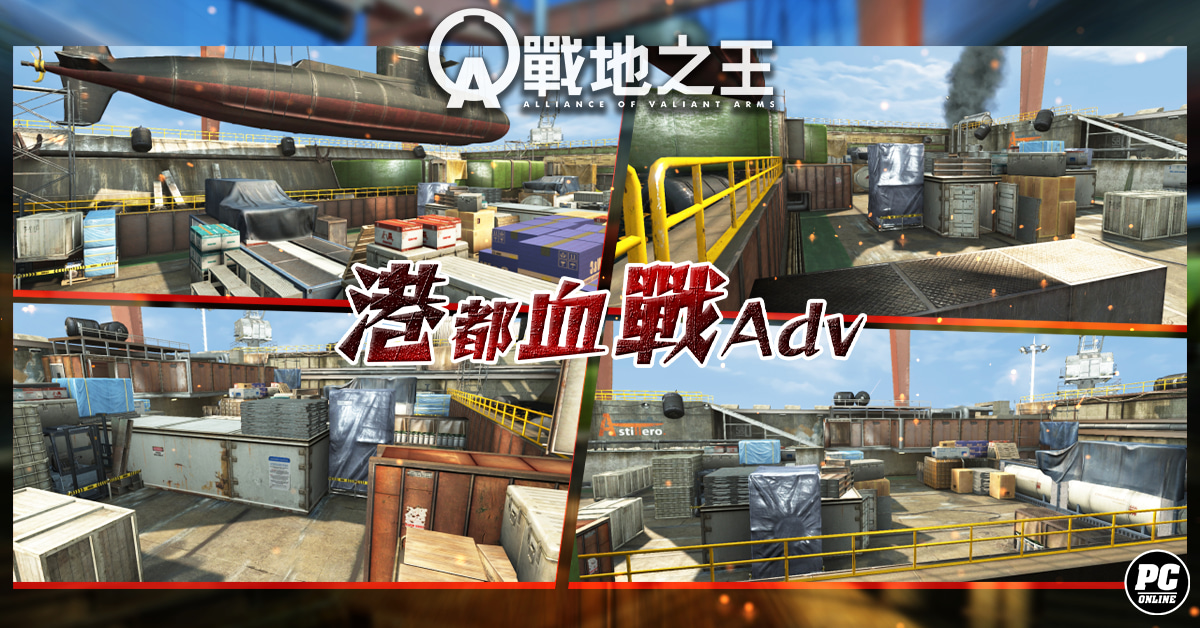 「港都血戰Adv」沿用原版地圖核心設定,是以維護修理船隻的船廠為背景進行設計, 地圖構造為對稱形式,除了兼顧平衡性且雙方陣營都可以輕鬆地熟悉地形並快速上手之外,敵我之間自重生點出發到正面交鋒的曝露距離相當短,所以這是在短時間內就會與敵軍展開交戰的超快節奏地圖,相當適合希望享受高頻度對戰的玩家。