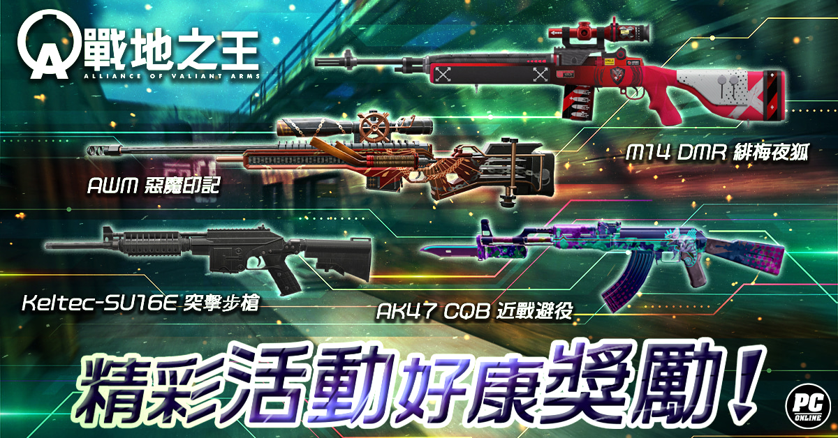 六月正式迎接夏日到來,多種熱鬧活動當然也不缺席,想要永久槍枝,那就記得遊玩改版地圖「港都血戰Adv」及其他活動期間指定的快配模式地圖,來獲得抽獎機會,有機會將「M14 DMR緋梅夜狐」、「AK47 CQB近戰避役」、「Keltec-SU16E 突擊步槍」、「AWM惡魔印記」⋯等虛寶帶走!