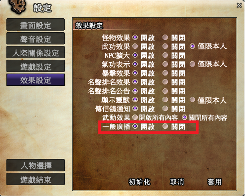關閉裝備強化、道具獲取、、道具製作(好品、名品) 的公告顯示