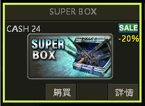 本週例行維護下架商品 網頁扭蛋-金典鉅獻至尊箱 遊戲內道具商店-武器爆彈 『SUPER BOX』