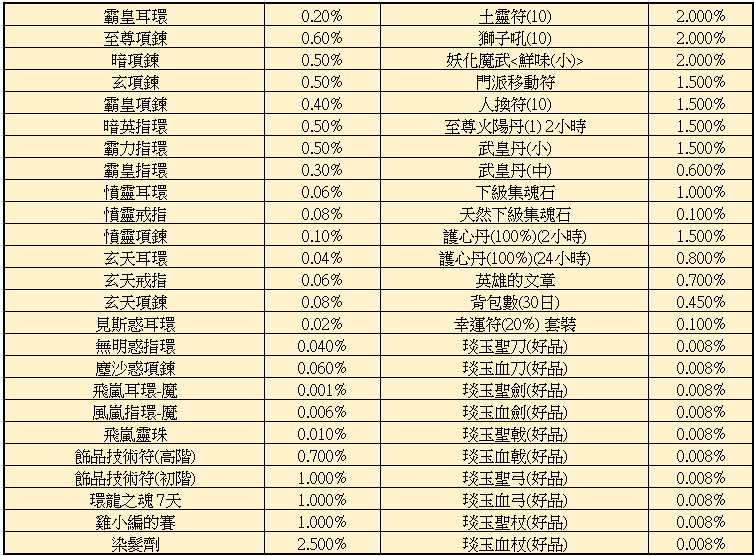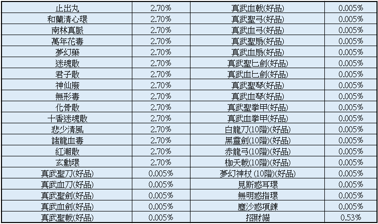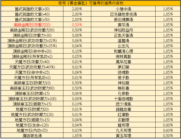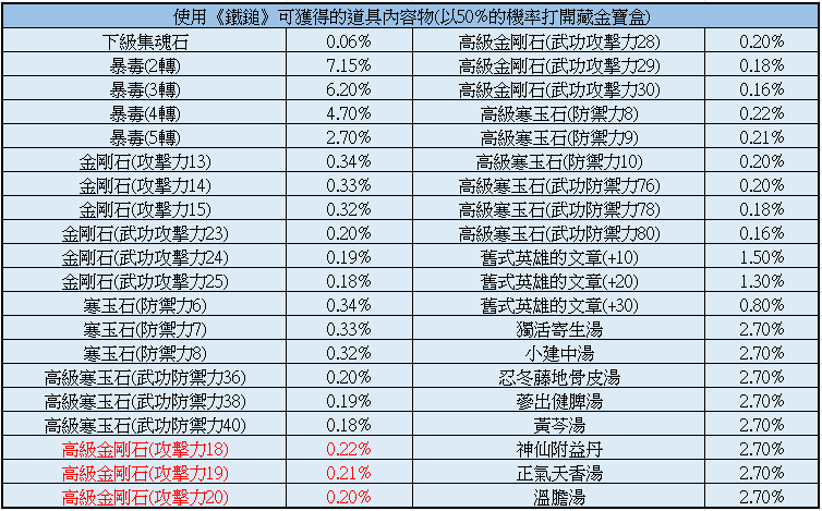 為了優化遊戲體驗,12/4維護後開始道具藏金寶盒使用鐵鎚及黃金鑰匙開啟可獲得道具內容物