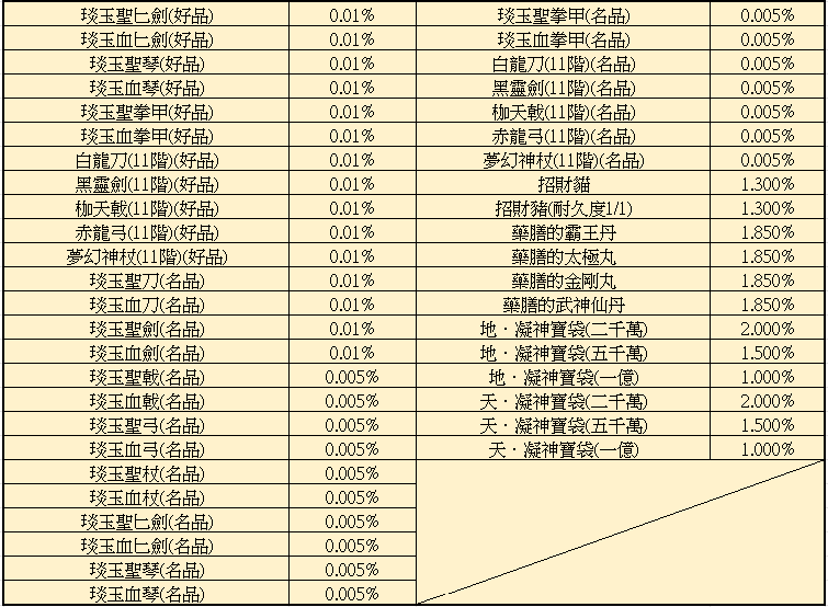 將不再包含高級金剛石(攻擊力+23)、高級金剛石(攻擊力+24)、高級金剛石(攻擊力+25)