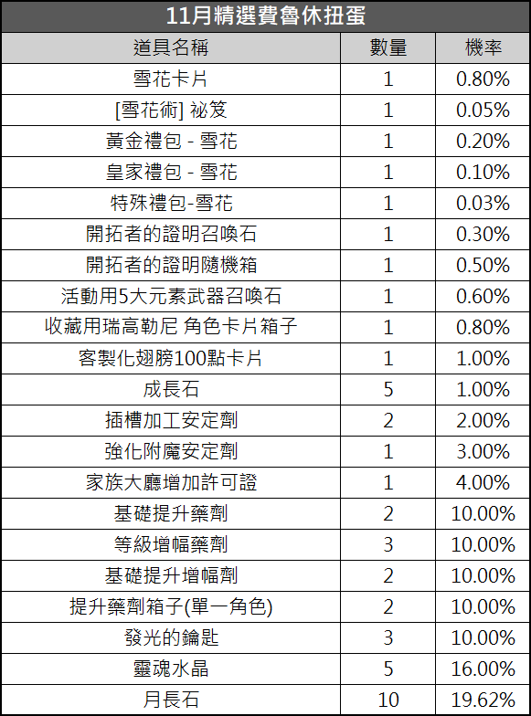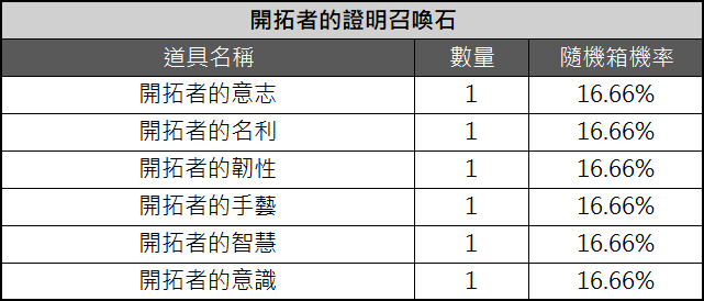 ※此扭蛋與林頓箱子不同,故請開拓者們要留意一下扭蛋的獎勵數量以及機率喔!